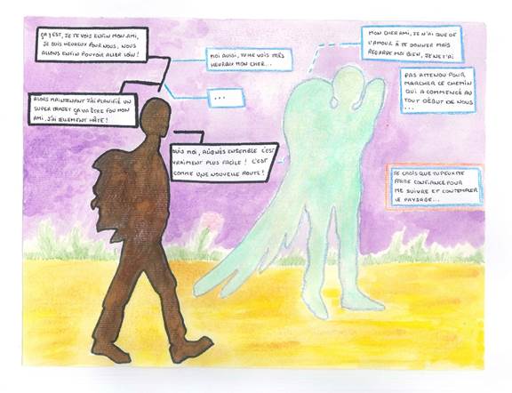 Dans la formation on apprend aussi à s’occuper des âmes méchantes (et on voit aussi ce qu’est un très très très méchant), des trucs dégueu parasites qui n’ont même pas d’âme, et un peu aussi des malédictions. Évidemment, à la fin de la formation (après quand même plus d’un mois d’écoute), on est carrément à l’envers ! Mais on a droit à un super soin de « t’en fais pas ça va bin aller » et de « on fait du ménage dans tout ce que t’as appris ». J’ai adoré plus plus le soin qui nous dit que ça va bin aller. Pour nous aider à accepter tout ça et avoir confiance en nous. Parce que c’est vrai que fut un temps j’avais une grosse chienne noire de ces choses-là mais ça va quand même beaucoup mieux. Et puis tu sais, bien qu’ils aient une influence dans la matière, ils ne peuvent pas te trancher la gorge comme dans les films, avec du sang partout et tout.